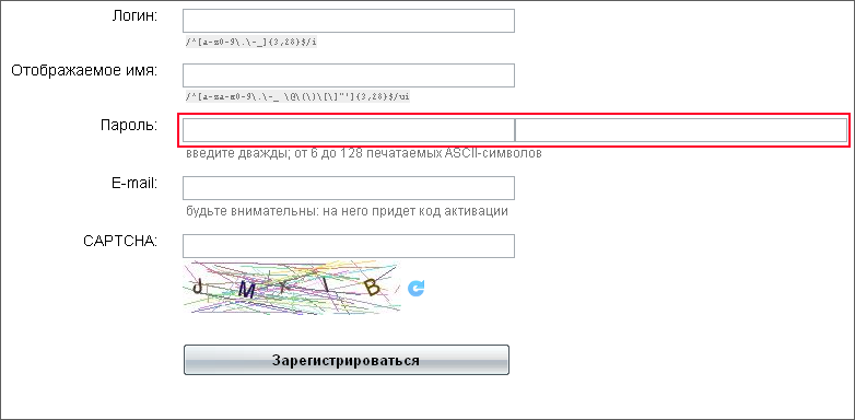 На регистрацию уходит от 5 и более минут, это является очень большим временным интервалом. В основном ошибки во время заполнения так называемой "капчи". Но главным недостатком формы является выделенные на рисунке поля "пароля" и "подтверждения пароля".